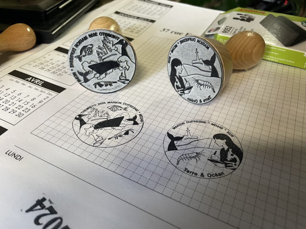 Il y a aussi des surprises de dernières minutes qui sont toujours présentes. Pour nous, il a fallu faire faire en urgence les tampons de philatélie de la mission qui n’arrivaient pas par courrier… Heureusement que Duvigneau gravure à Bordeaux à pu nous sauver in extremis !