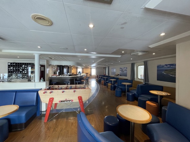 Un espace détente à côté du bar avec piste de danse, babyfoot et jeux de société, au pont E.