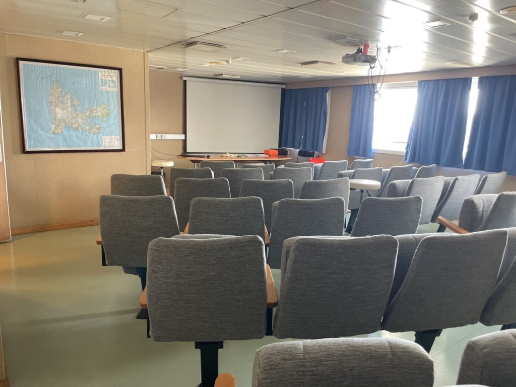Une salle de conférence pour écouter des présentations mais aussi pour regarder des films, au pont F juste à côté de ma cabine.
