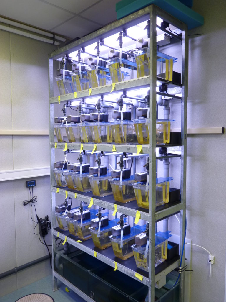 L’objectif était d’étudier les mécanismes qui découlent d’une sélection sur la taille de petits poissons de laboratoire dans un environnement très contrôlé à la station d’expérimentation du CEREEP-Ecotron IDF. L’idée derrière étant de « mimer la pêche » ou même la chasse qui tuent préférentiellement les plus grands animaux (#onestpasdesgentils ?). Est-ce-que lorsque l’on prélève toujours les plus grands poissons dans un groupe, pendant des générations, il y a des changements qui s’opèrent ? Est-ce que la taille moyenne diminue ? Est-ce-que le comportement change ? Est-ce-que l’expression des gènes se modifient ?  🤩 🤩 Autant de questions super intéressantes que j’ai simplement effleurées pendant ma thèse et qui nécessiteront encore beaucoup travail pour les chercheurs.euses  😁